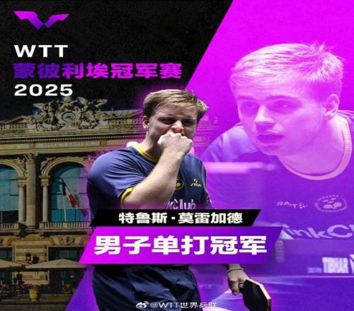 这是莫雷加德拿到的首个冠军赛单打冠军,也是他继欧洲大满贯瑞典站后,再次夺得WTT男单冠军。