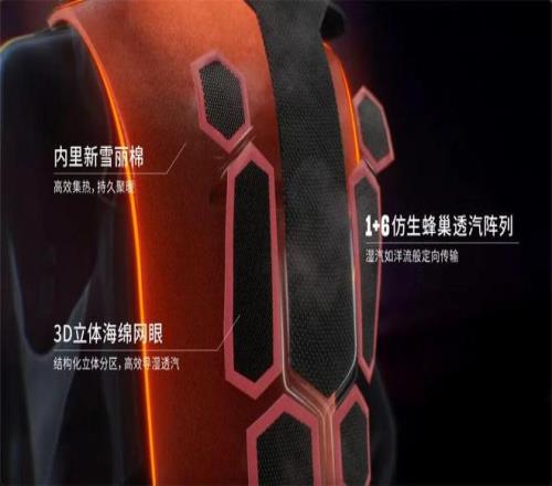 国家队同源的热力洋流3代科技,是帮助同步实现保温与吸湿排汗的一套系统性解决方案。其机理在于独特的蜂巢状模块化结构能使身体产生的热量在服装内循环流通,均匀分布,有效保持体温;配合后背透气窗与腋下拉链构建的“吸入-扩散-排出”湿热管理闭环,又能使运动产生的汗湿蒸汽通过蜂窝通道被快速导出,达成吸湿排汗。