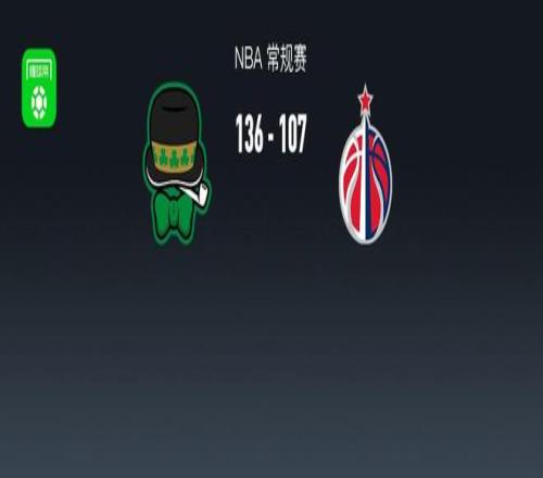 第四节凯尔特人安芬尼-西蒙斯拿下13分,奇才亚历克斯-萨尔拿下9分,最终凯尔特人136-107战胜奇才