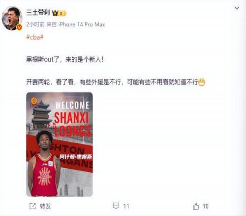 据媒体人透露,山西汾酒俱乐部已经裁掉了外援黑根斯!