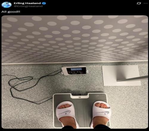 北京时间12月26日,曼城头号球星哈兰德更新社交媒体晒出称重照片,并配以“一切都很好”的文字,幽默回应了主帅瓜迪奥拉放假前对球员体重的严格管理要求。