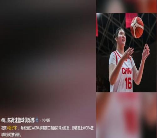 北京时间12月28日,山东高速篮球俱乐部正式官宣,超新星张子宇顺利完成联赛窗口期注册,即将踏上WCBA赛场开启职业生涯,预计最快2026年1月4日对阵河北女篮迎来WCBA首秀。
