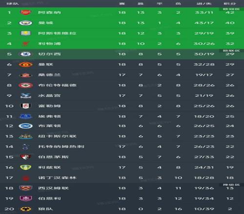 英超最新积分榜