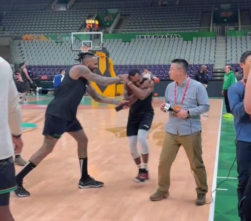 之外张镇麟也和赵继伟进行了打闹。他们两个之前一直都是球队的双核,他们的兄弟情也会非常深厚。