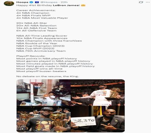 就连FIBA官方都为老詹送上41岁生日的祝福。