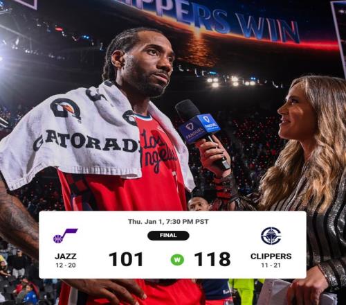 北京时间1月2日,快船118-101大胜爵士豪取六连胜,此役后快船已经反超爵士升至西部第11,要知道两周前快船还是西部倒数第一,如今快船距离附加赛只剩下1.5个胜场,最尴尬的是祖巴茨,他在脚踝扭伤后快船迎来一波6连胜。