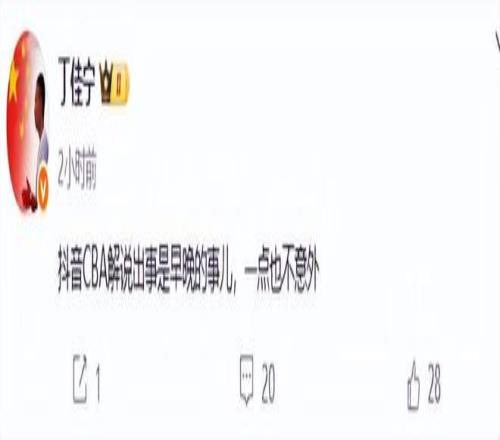 裁判专家丁佳宁更是怒斥:抖音CBA解说出事是早晚的事儿,一点也不意外。他还说,我前几年说CBA现场像菜市场,没想到如今CBA把直播也搬到了菜市场。大家都知道,菜市场是什么样子,那就是乱哄哄的样子。抖音获得CBA直播权后,让一些不三不四的主播带货直播,他们中有一些人根本没有专业知识,对体育知识了解不多,解说和表达能力极差,甚至说出一些不当的话。因此,球迷呼吁抖音CBA平台应该进行整顿,严格把关和审核,有直播资格的人才能担任解说,不能再让阿猫阿狗来担任解说员了。