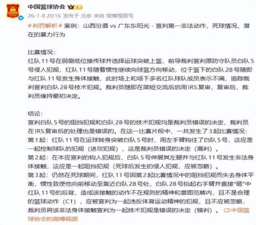 篮协此次主动承认错误并公开细节,确实展现了与以往不同的态度。公告中明确指出裁判"存在明显漏判和错判",这种直面问题的勇气值得肯定。