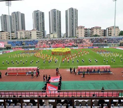 “渝超”比赛赛前节目表演。