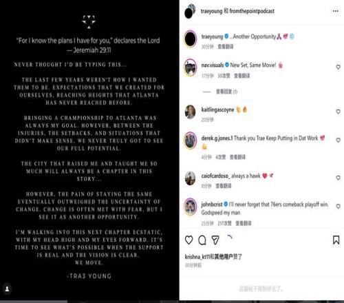 北京时间今日,最近刚被老鹰队交易到奇才队的特雷-杨更新个人社媒,他写了一封告别信向效力了7个半赛季的母队告别。