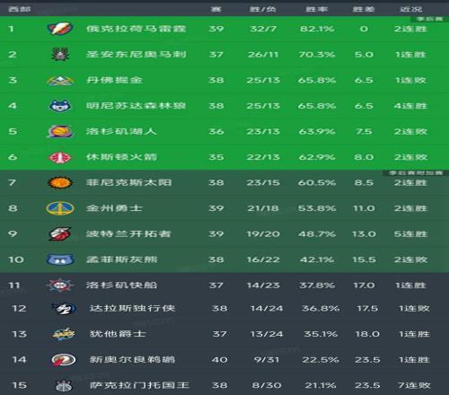 北京时间1月10日,今日的NBA常规赛结束了所有比赛,我们看看西部球队的战况和最新积分榜变动!