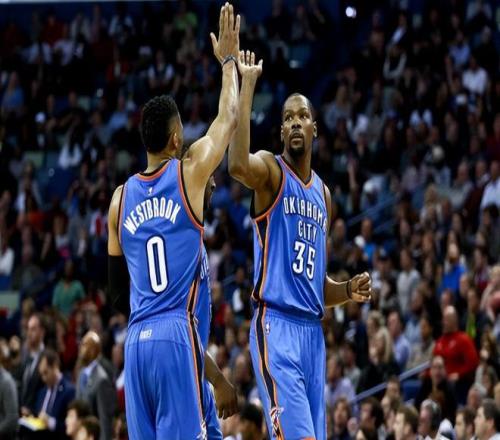 本场比赛,两人都发挥出不错的竞技水平。杜兰特拿到23分、4篮板、6助攻的数据;威少则是贡献15分、6篮板、10助攻的表现。
