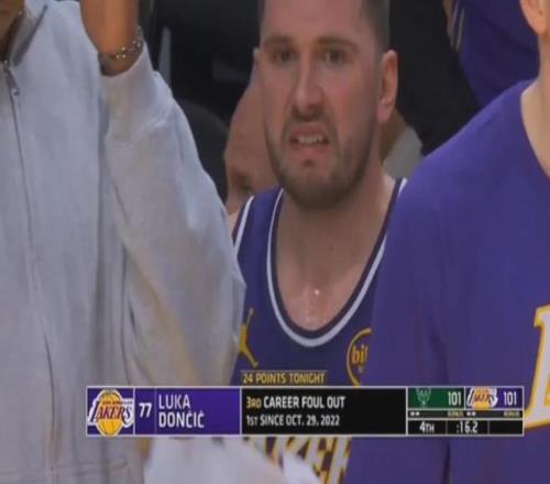就昨天,湖人101比105不敌雄鹿,东契奇在关键时刻6犯离场。