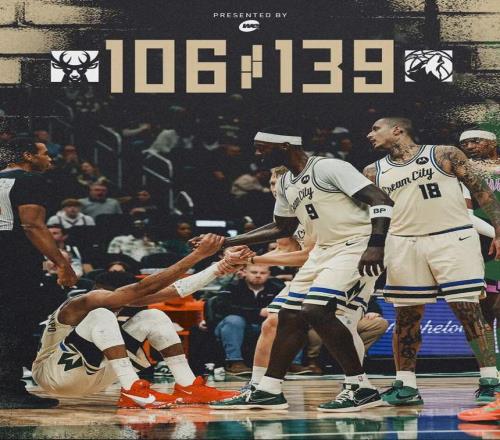 昨日常规赛,雄鹿主场以106-139惨败森林狼。