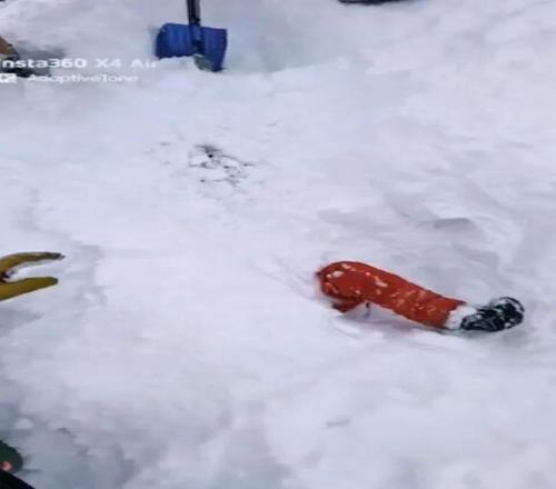 上周日,位于法国阿尔卑斯山脉的拉普拉涅滑雪场,一名50多岁的英国滑雪者遭遇雪崩,被埋在2.5米深的积雪下。