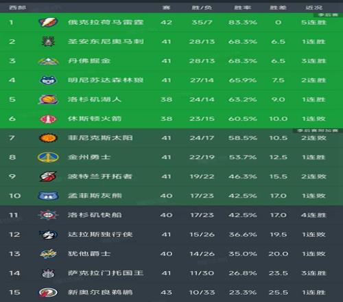 NBA西部最新积分榜