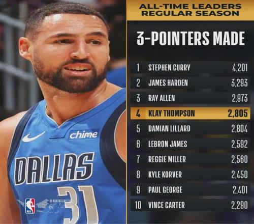 克莱的合同3年5000万美元,2027年夏天到期。下赛季利拉德就要复出了,你觉得他俩谁能成为历史三分榜单前三名?