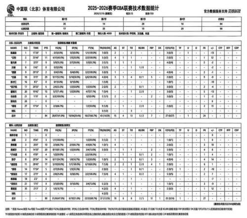 北京时间2026年1月16日19:35,2025-2026赛季CBA联赛常规赛第15轮继续进行,山西汾酒客场挑战北京北汽。两队历史上共交手52次,山西汾酒18胜34负;上赛季两队交手5次,山西汾酒2胜3负。本场比赛,山西队背负巨大压力,开局依旧慢热,进攻端畏首畏尾,一度陷入停滞。经教练组调整后,全队团结一致、力拼防守,始终紧咬比分,末节关键时刻展现出足够韧劲,最终成功取胜。全场比赛结束,山西汾酒90:84战胜北京北汽。