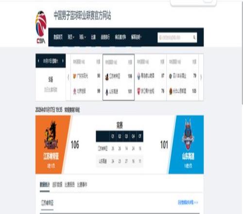 CBA常规赛第16轮,江苏男篮坐镇主场迎战山东男篮。最终江苏队通过加时赛以106-101击败山东队,成功终结了他们的8连胜。