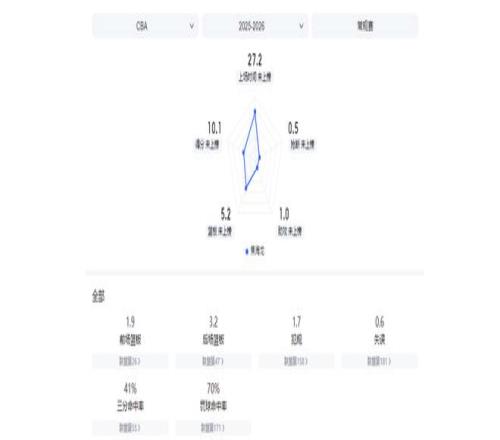 16次出场后,焦海龙场均可为球队贡献10.1分5.2篮板1助攻,投篮命中率62.1%,三分命中率41.4%。这两项命中率数据,均创下了他职业生涯出场次数超过2场的赛季新高。