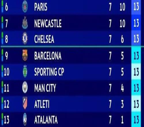 纽卡斯尔(第7)将在客场挑战巴黎圣日耳曼(第6)。这是一场谁赢就能大概率挤入前8的关键战。