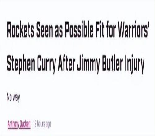 从交易逻辑来看,在巴特勒赛季报销后,勇士本赛季的希望基本已经破灭;而如果库里依旧还希望冠军,加盟火箭也不失是一个合适的选择。