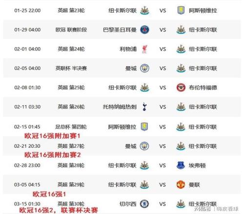 具体而言,纽卡斯尔本周迎战阿斯顿维拉,接着是巴黎圣日耳曼和利物浦,曼城和布伦特福德,随后是热刺和阿斯顿维拉,曼城和埃弗顿,最后还有曼联和切尔西,11场比赛,9遇强大对手,涵盖了英超、欧冠、联赛杯和足总杯四大赛场,不仅包括欧洲卫冕冠军巴黎,还两次遇上维拉,两次遇上曼城,其中只有布伦特福德和埃弗顿,也许实力较弱一些。
