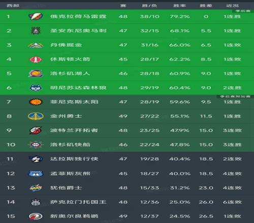 北京时间1月29日,今日的NBA常规赛结束了所有比赛,我们简单看看战况和最新的西部排名变动,主要的信息如下:马刺111-99复仇火箭,湖人99-129惨败骑士,森林狼118-105独行侠,勇士140-124大胜爵士,灰熊97-112不敌黄蜂。