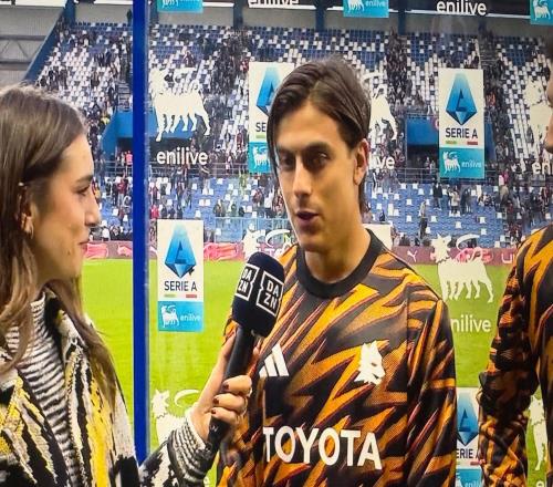 雷速体育10月27日报道宣称 北京时间10月26日22:00,意甲第8轮,罗马客场1-0战胜萨索洛,本场比赛结束之后,为罗马打进制胜球的迪巴拉获得全场最佳球员并接受了DAZN的采访。如何看