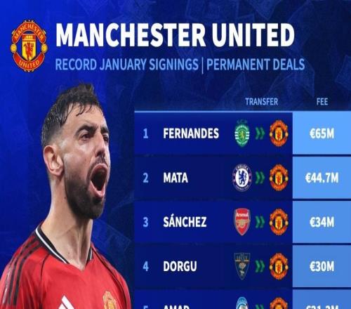 德转列曼联队史冬窗最贵引援TOP10:B费、马塔、桑切斯前3