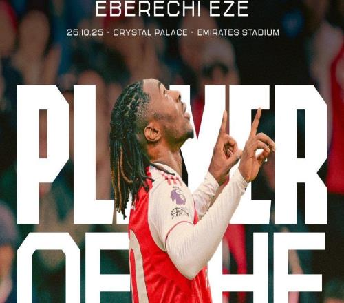 雷速体育10月27日报道宣称 稍早前结束的英超第9轮比赛中,阿森纳主场1-0击败水晶宫。比赛中,埃泽代表阿森纳首发出战,并打入全场唯一进球。赛后,阿森纳官方也宣布,埃泽当选本场比